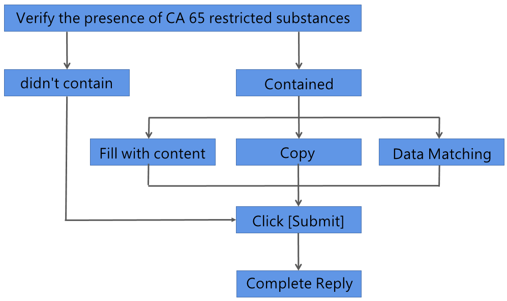 The CA65 Survey offers a comprehensive interface for the declaration of hazardous substances under CA65 Survey, facilitating suppliers to quickly complete investigation tasks.