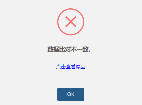关闭弹窗。点击蓝字的[点击查看原因]可查看不一致的数据资料。