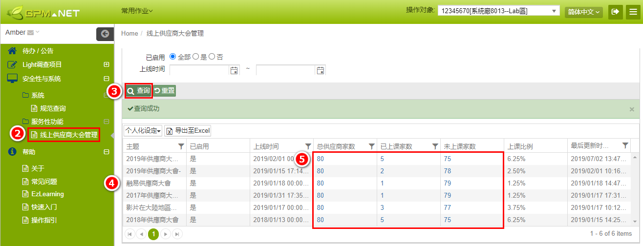 - 会自动跳转到 ezGPM.NET 平台并登录,点击[安全性与系统] > [在线供应商大会管理]。