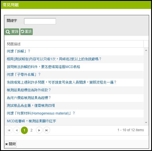 - 如果您在頁籤 [未結案問題] 中找不到您的案件,可能是您的案件皆已結案了。如果要查詢己結案的歷史案件,可以點選功能選單上的提問紀錄 功能,在這個查詢畫面中可以查閱您過往的所有提問紀錄。